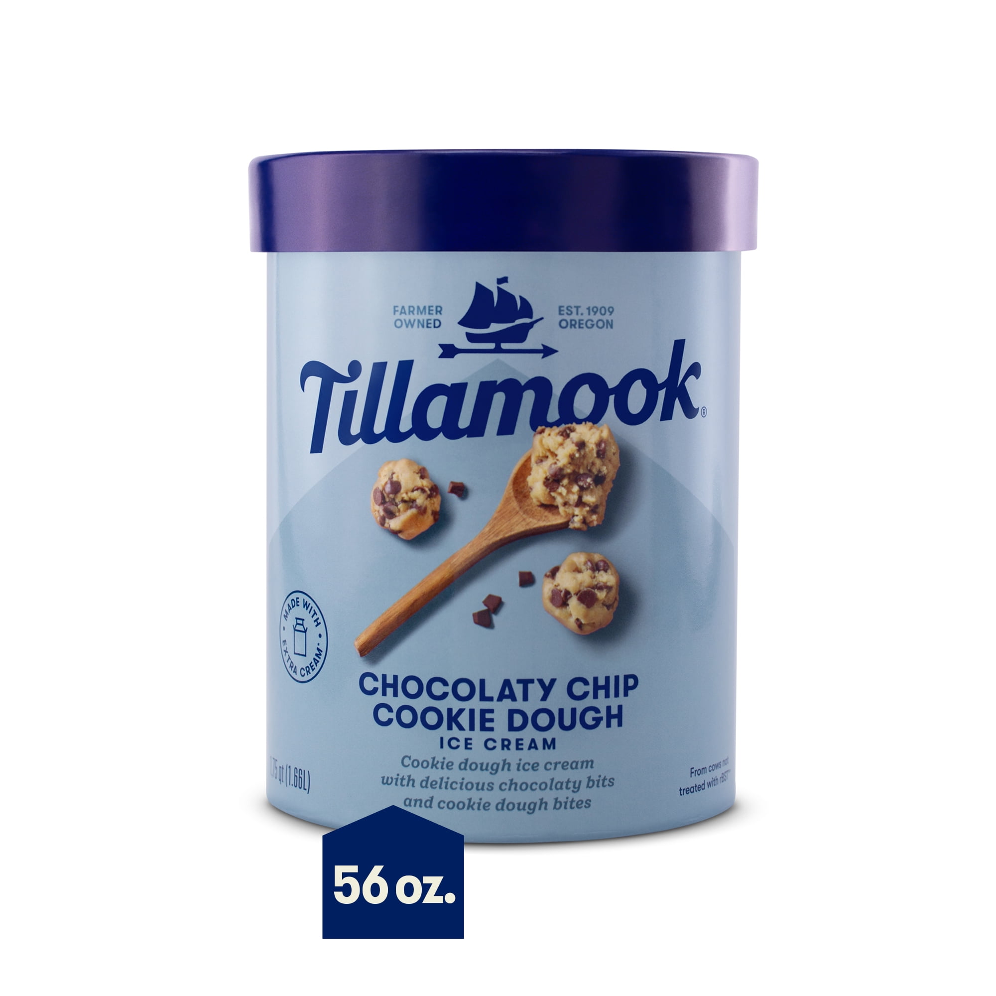 Tillamook Chocolate Chip Cookie Dough Ice Cream 56 Oz 1 75 Qt Walmart Com